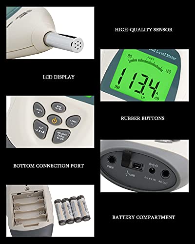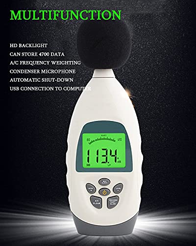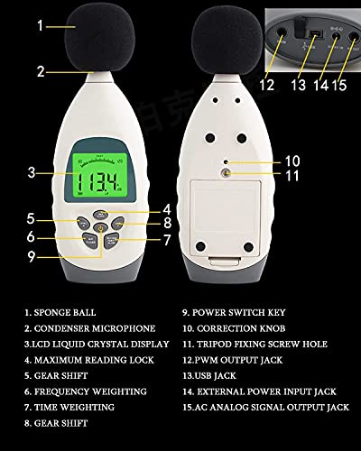 Specification: NKTJFUR Ruistester Condensor Microfoon 3 Geleidende lagen, Geluidsniveau Meter LCD-backlit Display, Noise Meter Detector…